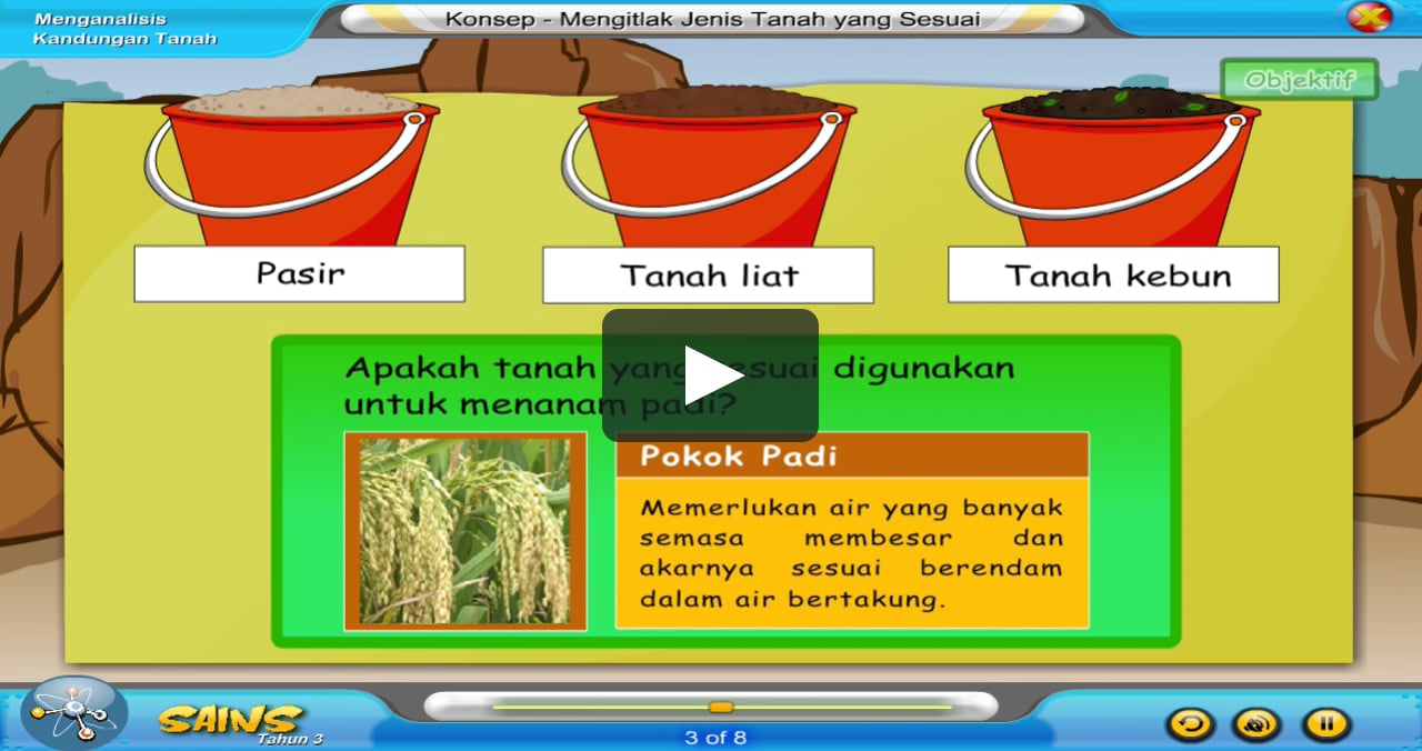 ISTIMEWANYA TANAH 3 KANDUNGAN JENIS TANAH TANAH KEBUN Tanah kebun mengandungi batu-batu. 3 Teras Tema. Kertas peperiksaan ini adalah Sains Dunia Sains dan Teknologi untuk murid Darjah 3 mengikut Kurikulum Standard Sekolah Rendah KSSR.